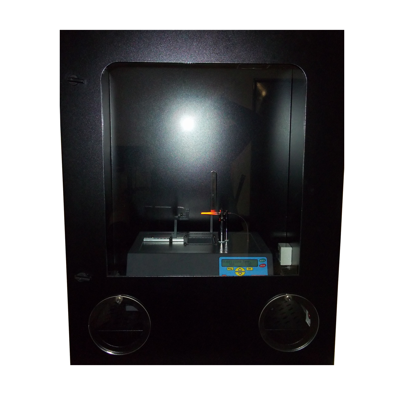 Dispositivo diseñado y desarrollado para ser utilizado en conjunto con el equipo de ensayos de Filamento Incandescente o el dispositivo Quemador Bunsen / Quemador de Aguja.
