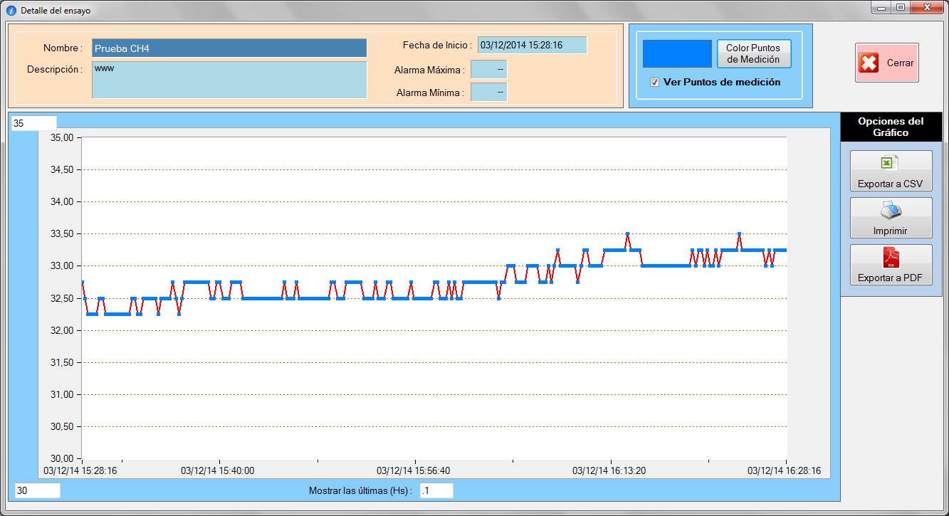 - Guarda los valores de cada ensayo en tiempo real para evitar perdidas de datos ante eventuales problemas de alimentación.