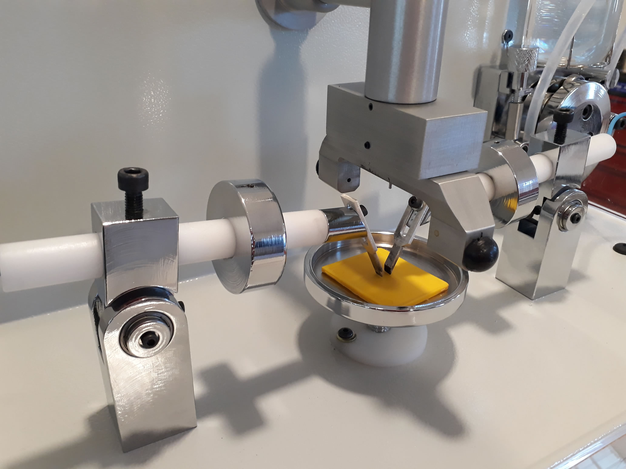 add Plataforma de ensayo regulable en altura para muestras con distintos espesores.