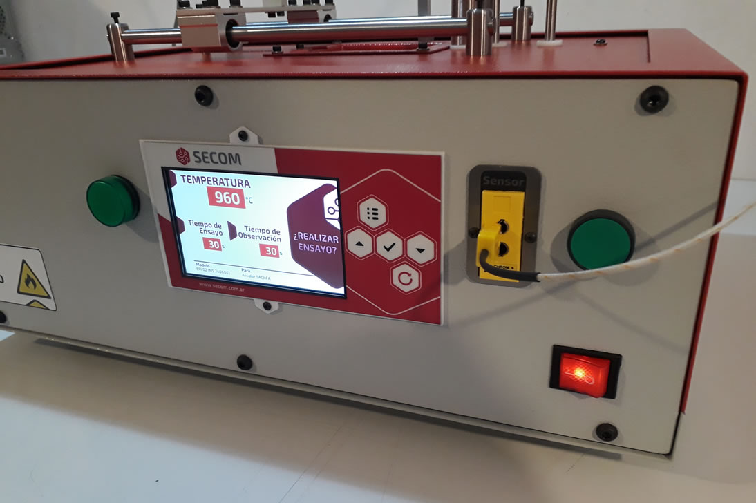 1° equipo para ensayos de Hilo incandescente con pantalla táctil color de 5", desarrollado y fabricado integramente en ARGENTINA