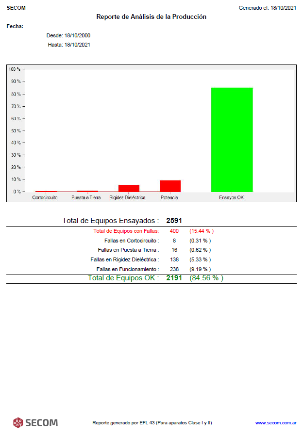 El equipo EFL 43 es un sistema de Adquisición, Procesamiento, Control y Gestión de datos, que permite almacenar todos los resultados en una base de datos para luego generar reportes de producción diaria / mensuales / anuales, gráficas estadísticas, obteniendo así toda la información y tendencias necesaria para la administración del sistema de control productivo.