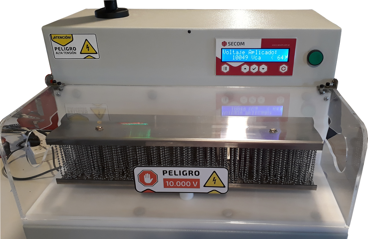 El equipo Spark Test (Spark Tester) se encuentra diseñado para realizar el ensayo de tensión en seco entre electrodos (spark test), para verificar la aislación de conductores eléctricos durante el proceso de fabricación, o en fases posteriores de producción, del 100% de la producción.