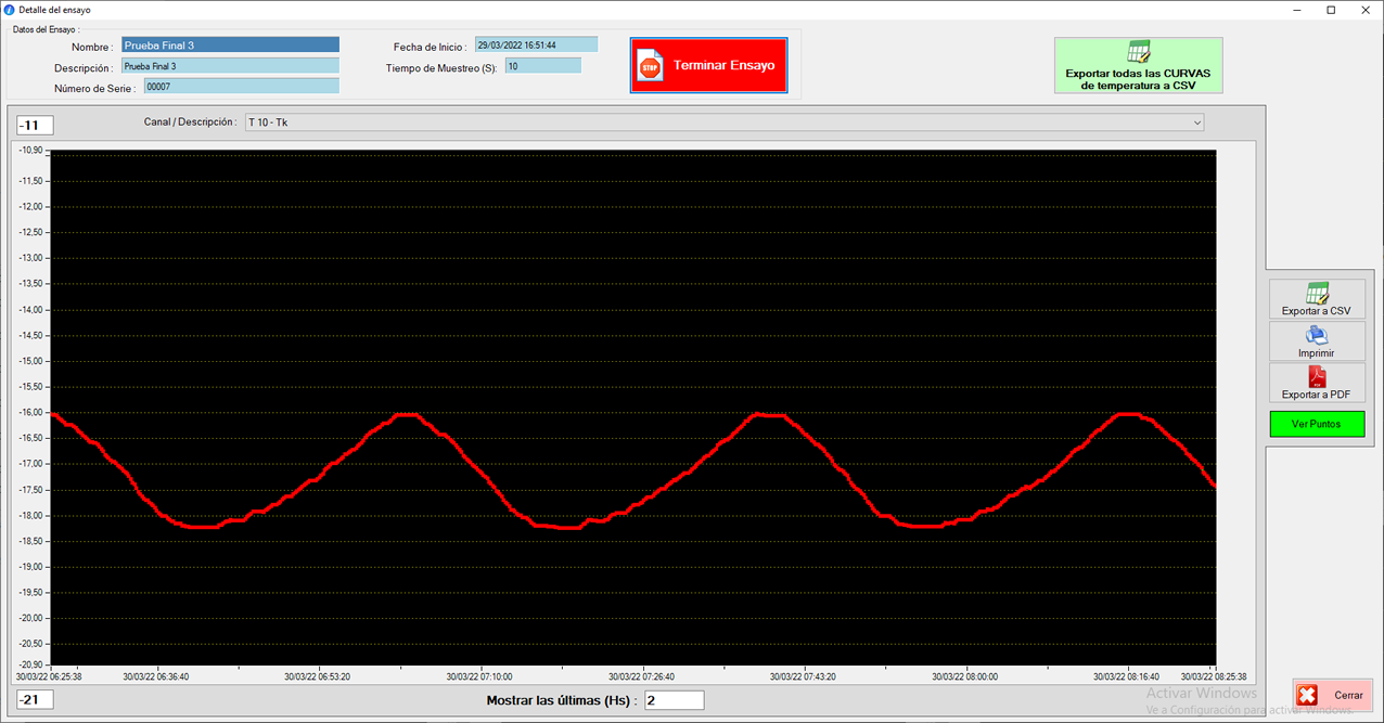 - Guarda los valores de cada ensayo en tiempo real para evitar perdidas de datos ante eventuales problemas de alimentación.